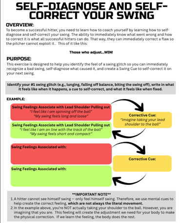 Download this activity to learn how to self-diagnose and self-correct your swing. Identify swing glitches, create Swing Cues to fix your swing instantly